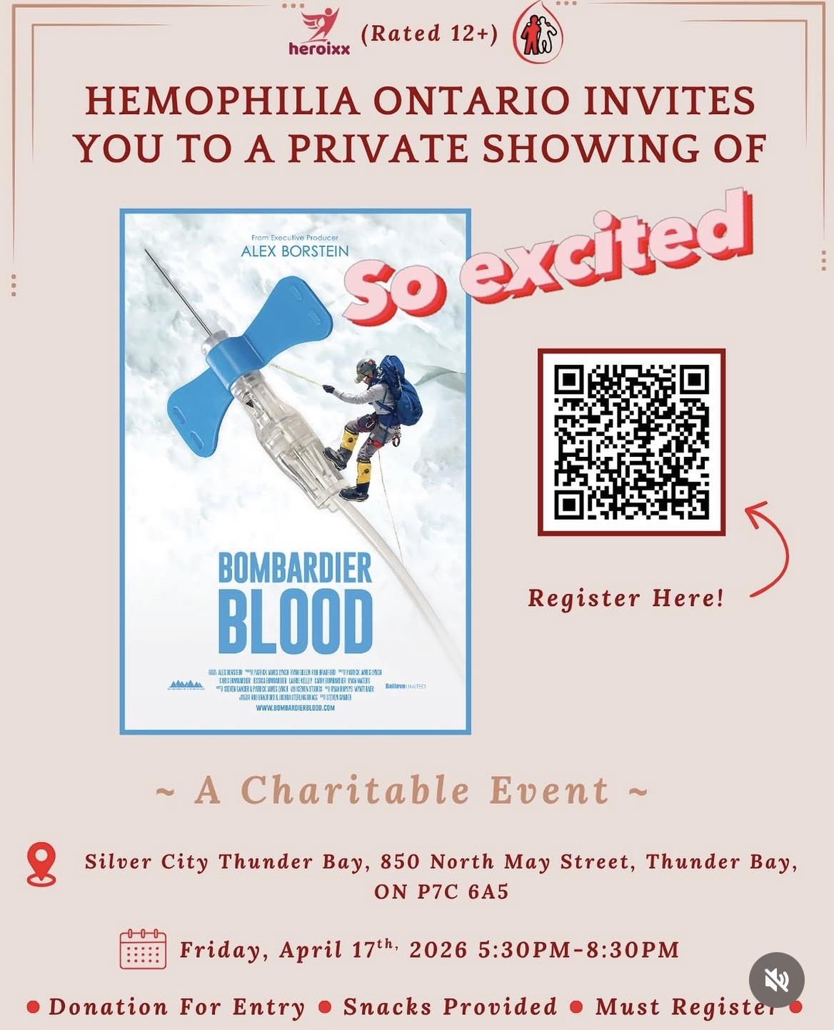 Event: Private Screening – Bombardier Blood (Lakehead Rotary) Date: Friday, April 17 Details: Registration: |